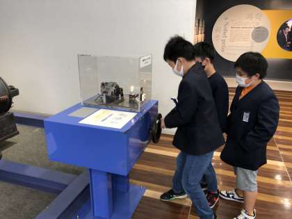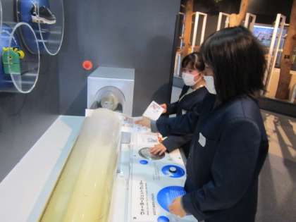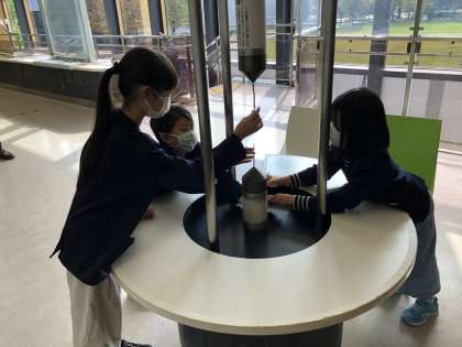 科学のしくみを使った機械に興味津々の子供たちです。
