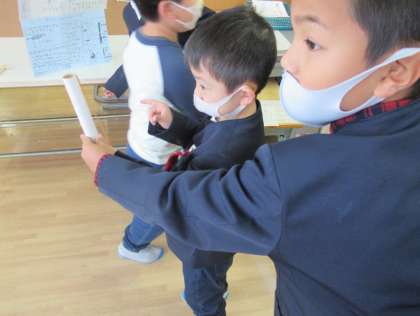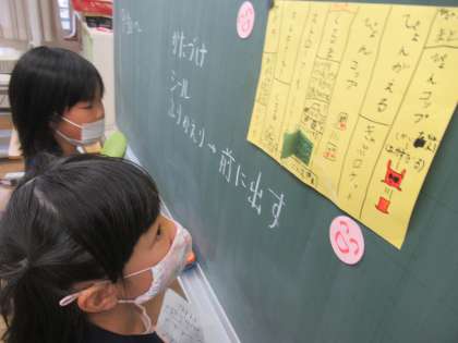 12日(金)に1年2組の子供たちを2年2組の「うごくおもちゃランド」に招待しました。1年生に楽しんでもらうために、一生懸命準備をしてきました。