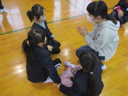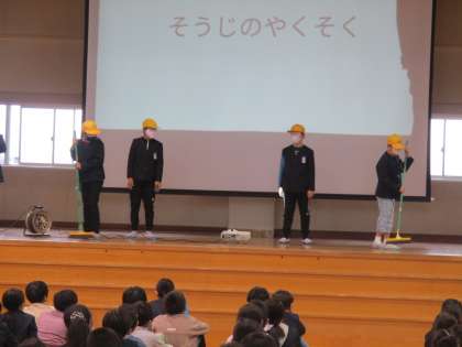 2年生との交流会をしました。同じ学校の仲間として、絆を深めることができるように計画してきました。また、劇を通じて掃除のやり方について伝えることができました。