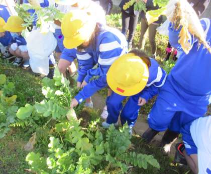 葉っぱを引っ張ると、地面から大根が出てきました。子供たちは、「あんなに小さい種からこんなに大きくなるんだ」「早く食べたいな」等と言いながら、持ってきた袋に嬉しそうに大根を入れていました。