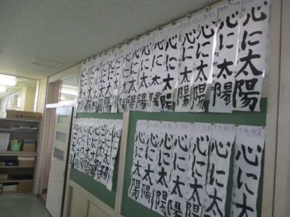先週ぐらいから各教室で書き初め練習が始まりました。今年の6年生は「心に太陽」です。学校や冬休み中にたくさん練習をし、3学期の始業式後の書き初めでは、がんばりを発揮してほしいと思います。