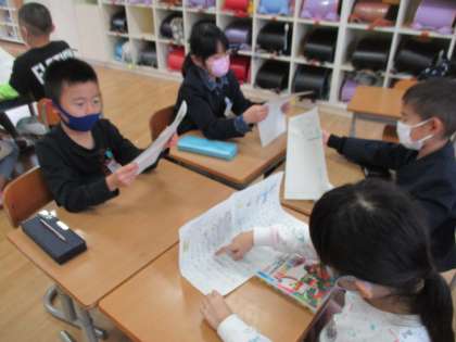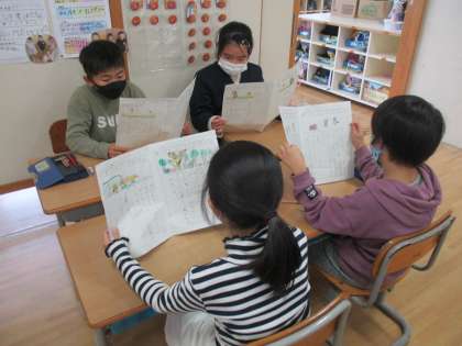 グループの友達とお話を読み合い、感想を伝え合いました。