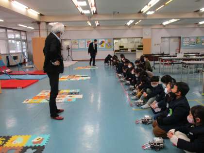 2年生は、今日明日の二日間でプログラミング学習を行います。講師の方をお招きし、各クラス2時間ずつ活動します。