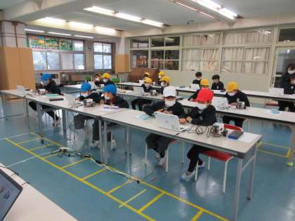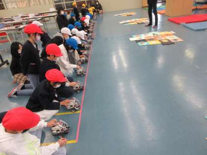 「前に進む」「右に曲がる」などの項目をを選び、自分たちでロボットを動かしました。