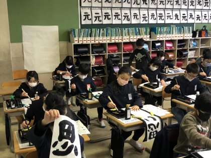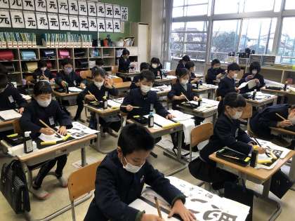 今日は書き初め大会に取り組みました。静かに心を落ち着けて筆を動かす姿を見ていて、3学期へのやる気が感じられました。もうすぐ上学年、子供たちのさらなる成長が楽しみです。