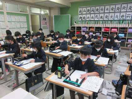 冬休みに練習してきた成果を発揮しようと、みんな真剣な顔つきで、書き初め大会に取り組みました。