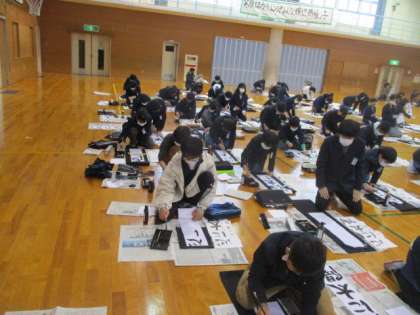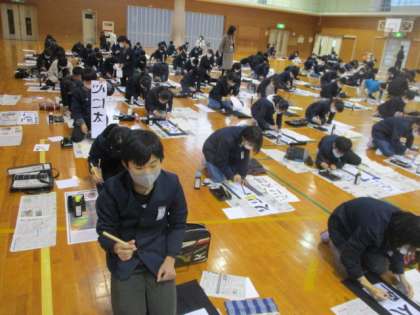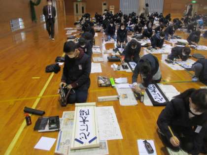 子供たちは、最後まで一言も話すことなく、書き初めを行いました。3学期になり、子供たちは、一層、次のステージへの意識を高めてきているのだなと実感した担任一同でした。写真は5組です。