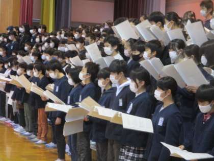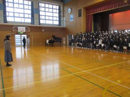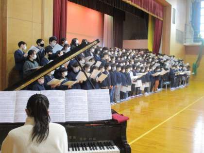 3学期になり、早速、合唱練習を再開しました。合唱で気を付けることを思い出しながら、歌いました。