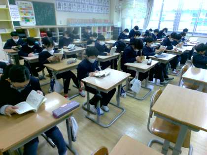 今朝は読書を行いました。朝のさわやかな空気の中、集中して本を読むことができました。