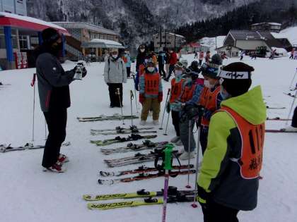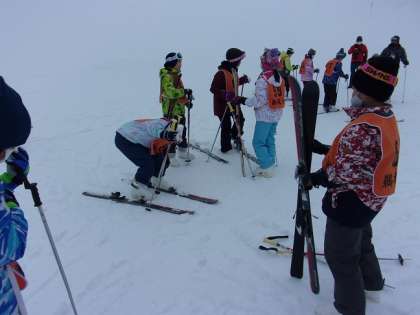 スキーの道具の扱い方や名前を覚えました。練習の中で、少しずつ使いこなせるようになってきました。
