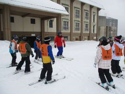 スキー経験者の班では、午前中からリフトを利用して山の上から滑りました。