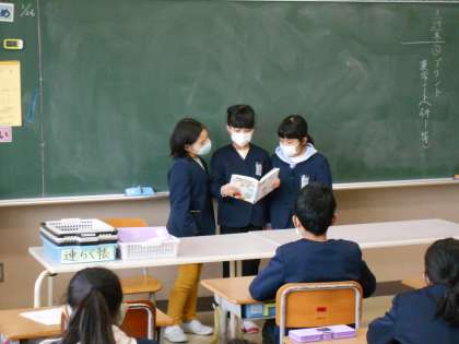 2組では、読書タイムに係の子供たちが本の読み聞かせをしました。子供たちは、楽しくお話を聞いていました。同じシリーズで他にもたくさんの本があると知って、興味をもった子供もいました。