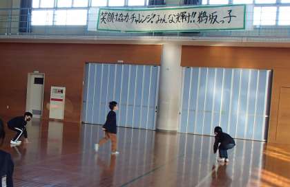 昔の遊びの中でも、竹とんぼと羽子板は、広い体育館で楽しみました。
