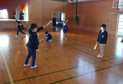 竹とんぼは、何度も挑戦するうちに少しずつこつを覚えていき、遠くへ飛んだり高く飛んだりすると嬉しそうな歓声があがりました。羽子板も、最初は空振りばかりだった供供たちですが、だんだん上達していき、打ち返すよい音が聞こえるようになりました。