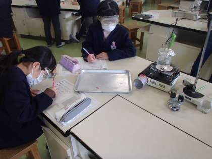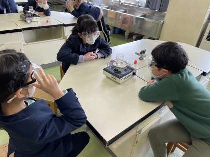 水を熱した時の温度の変わり方や水のようすを実験しました。時間が経つほどどんどん上がる温度を興味津々で見ていました。ガスコンロの扱いにも慣れ、安全に気を付けて実験することができました。