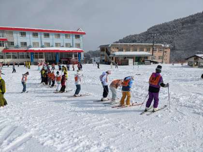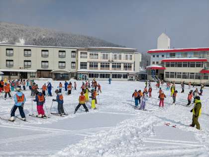 今シーズン、初めて滑るという子供たちが多く、緩やかな坂を使い、小さくジャンプするなどして、慣れていきます。