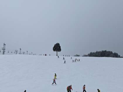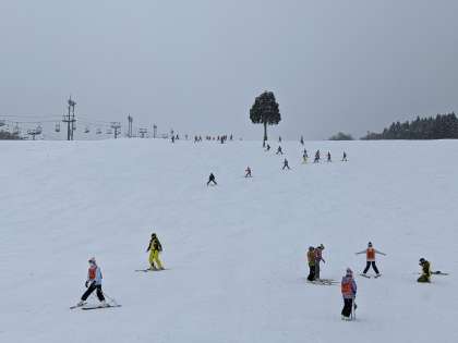 午後の活動の終了時刻が近付いてきました。頂上からたくさんの子供たちが滑ってきました。