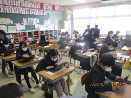5組は外国語科です。「My future My dream」自分の未来と夢について考え、英語でどのように伝えればよいのか考えています。