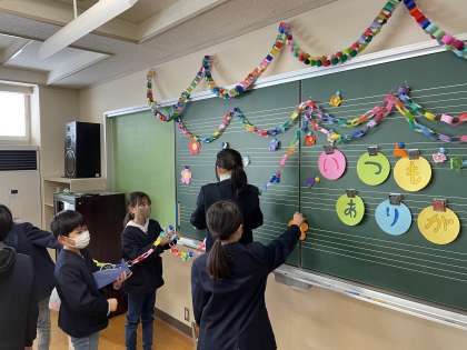 会場の飾りを作ったり、飾り付けをしたりしている様子です。