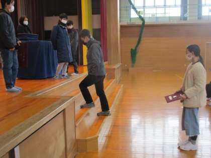 今日は、感染症対策のため、クラスを分けて、初めての卒業証書授与の練習を行いました。子供たちは、緊張した面持ちで練習に臨んでいました。
