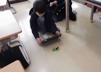 図画工作科の時間に、すきまテープとモールで「すきまちゃん」をつくりました。顔を描いたり手足を動かしたりするうちに、どんどん愛着がわいてきて、「すきまちゃん」と一緒に身の回りにあるいろいろな隙間を見付けて楽しみました。