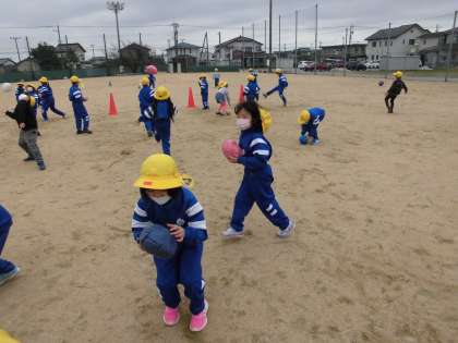 体育の学習で「ボールけりあそび」を行いました。手づくりの新聞ボールをドリブルしたり、リフティングに挑戦したりしました。投げるのとは違い、足でボールをコントロールすることは難しかったようですが、みんな楽しんでボールを追いかけていました。