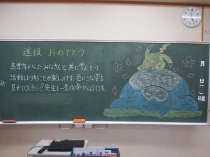 久しぶりに子供たちの元気な声が学校にもどってきました。各担任から、子供たちへの思いを込めたメッセージを黒板に書きました。
