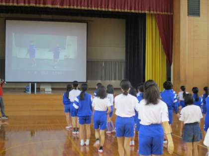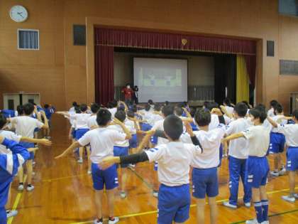 来月に予定している運動会でのさんさい踊りの練習をしました。男女それぞれのポイントを確認し、踊るたびに動きがよくなってきました。当日のよりよい発表に向けて、さらに練習を重ねていきます。