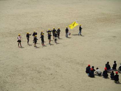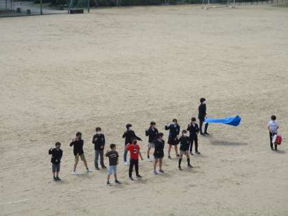 6年生が各教室で行事の準備をしていると、グラウンドから声が聞こえてきました。外を見ると、6年生の各色団で応援の練習をしていました。声を揃え、大きな動きで、がんばる鵜坂っ子を応援しようと意識を高めてきています。