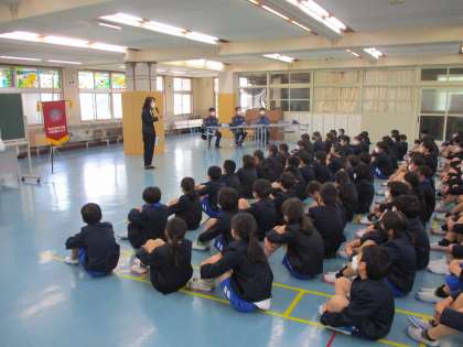 富山市婦中消防署の方をお招きし、BFCの集いを行いました。婦中消防署の方から、BFCの歴史をはじめ、煙が進むスピードや住宅警報器の確認の仕方等について教わりました。