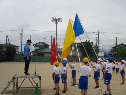 今日は、運動会当日のように1・4・6年生が一緒に開会式の練習を行いました。式の流れや歌、ラジオ体操のポイント等を確認しました。また、6年生は閉会式の練習も行いました。