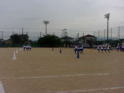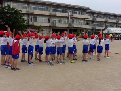 今日は途中まででしたが、実際に競技してみました。順番を待っている子供たちの応援にも熱が入っていました。万歳の練習も上手にできました。