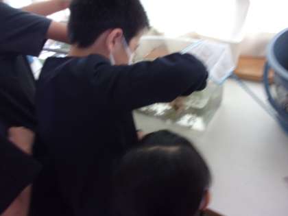 5年生は、理科の学習としてメダカを飼って観察しています。