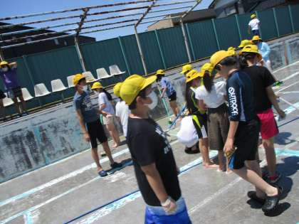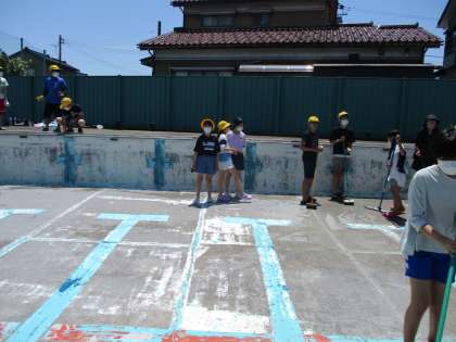 3時間目と4時間目を使って、しっかりと大小プールの壁や底の部分をきれいにしました。プール開きが楽しみですね。5年生、6年生のみなさん、お疲れ様でした。