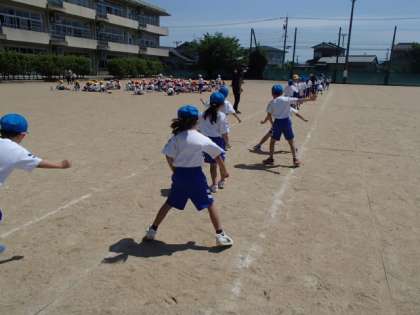 今日の体育では、体力テストの種目である。「立ち幅跳び」と「反復横跳び」の練習をしました。初めての動きでしたが、一生懸命にがんばっていました。