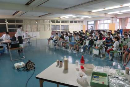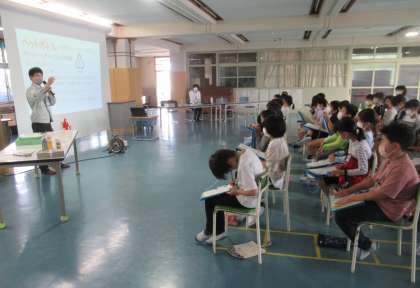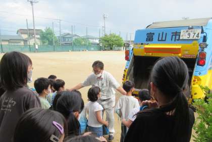 富山市環境センターの方をお招きし、3R推進スクールを実施しました。