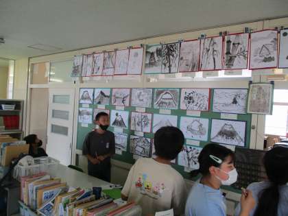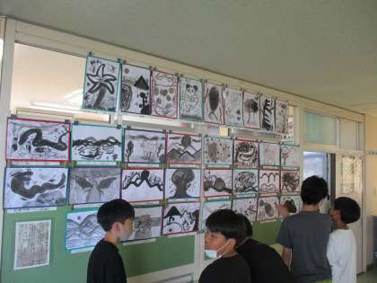 6年生は図画工作科で水墨画を描きました。たくさんの作品を鑑賞し、よさや工夫を見付け、今後の作品づくりに生かしてほしいと思います。