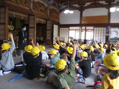 寺院では、仏壇の上にある龍や鳳凰の彫刻に興味をもったり、仏壇の中の物について質問したりすることができました。