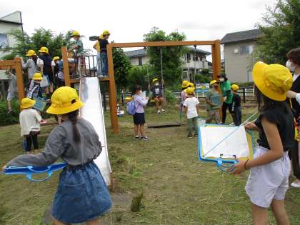 どんぐり公園では、椅子を数える子供、虫を探す子供、遊具で遊ぶ子供等、みんなで仲良くすてきなところに触れることができました。