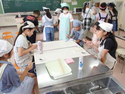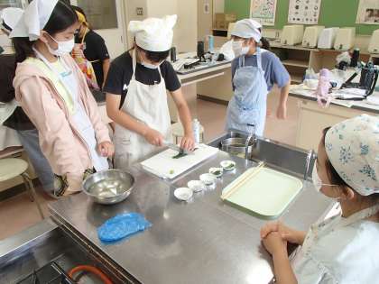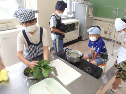 5年生は、家庭科で「ほうれん草をゆでる」学習を行いました。班の友達と協力しながら手際よく調理していました。