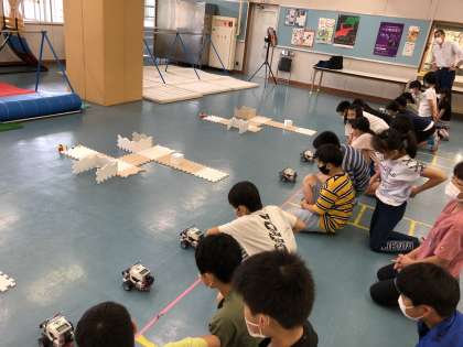 5年生になり、超音波センサーを使いロボットを動かしました。