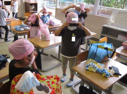金曜日から始まるプール学習に向けて事前準備を行いました。水泳帽をかぶる練習をしたり、プール学習の約束について確認したりしました。