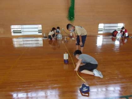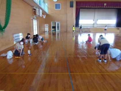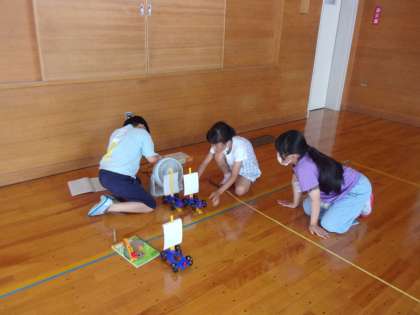 理科の学習で、風の力で車を動かす実験をしました。暑い中、みんなよくがんばりました!