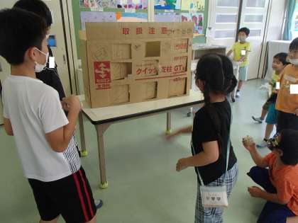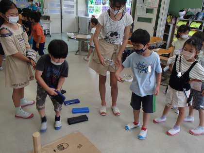 6年生が、鵜坂っ子ハッピープロジェクトで、1年生が楽しく遊べるような企画を考えてくれました。輪投げや的当てのコーナーで、1年生は楽しく活動しました。