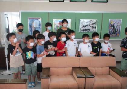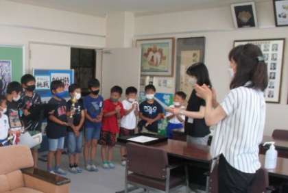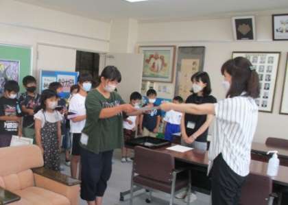 サッカー、野球、ソフトボールの競技で活躍した子供たちの授賞式を行いました。校長に励ましの言葉をもらい、嬉しそうにしていました。