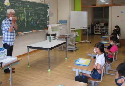 今日は、栽培ボランティアの方が野菜の先生になって教室に来てくださいました。子どもたちは、育てている野菜ごとに集まり、日頃の世話で心配なこと、不思議に思っていること等を、たくさん質問することができました。