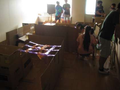 総合的な学習の時間で、先月から各学級で進めているハッピープロジェクトですが、あるクラスでは迷路をつくり、下学年を招待しました。「楽しかった」という感想を聞き、6年生はやりがいを感じていました。