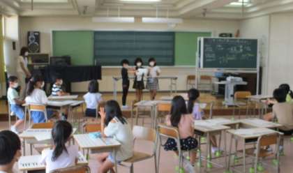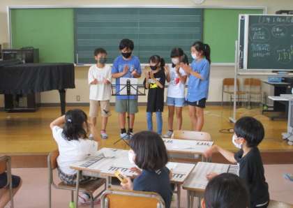 自分たちでつくったリズムに、歌詞をつけて、みんなの前で発表をしました。