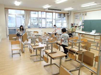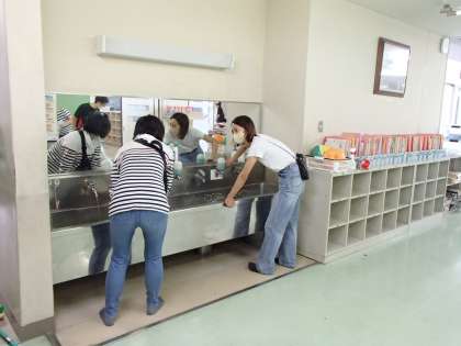 本日、親子クリーン作戦が行われました。雨が降っていたため、校内の清掃になりました。子供たちは自分の教室を隅々まで清掃しました。保護者の方々は、窓や洗面所、特別教室、体育館のギャラリー、器具庫等を清掃していただきました。見違えるほどきれいにりました。