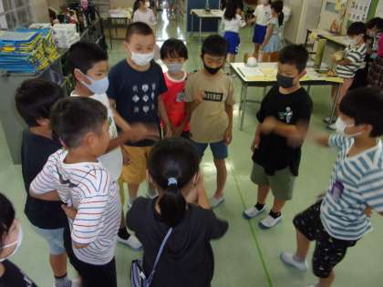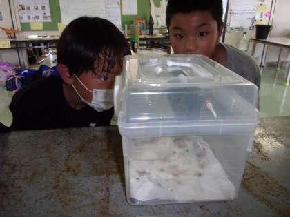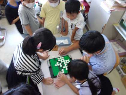 バッタを捕まえてきて飼っているカマキリに食べさせたり、先生とオセロをしたり、思いも思いに楽しむ子どもたちでした。